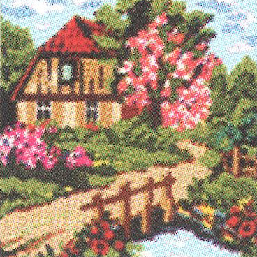 A készlet tartalma: A mintával előnyomott normál vagy tű gobelin kanava
